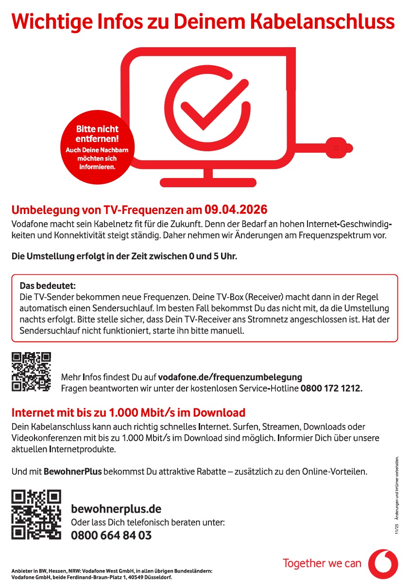 Information der Vodafone zur Senderumbelegung